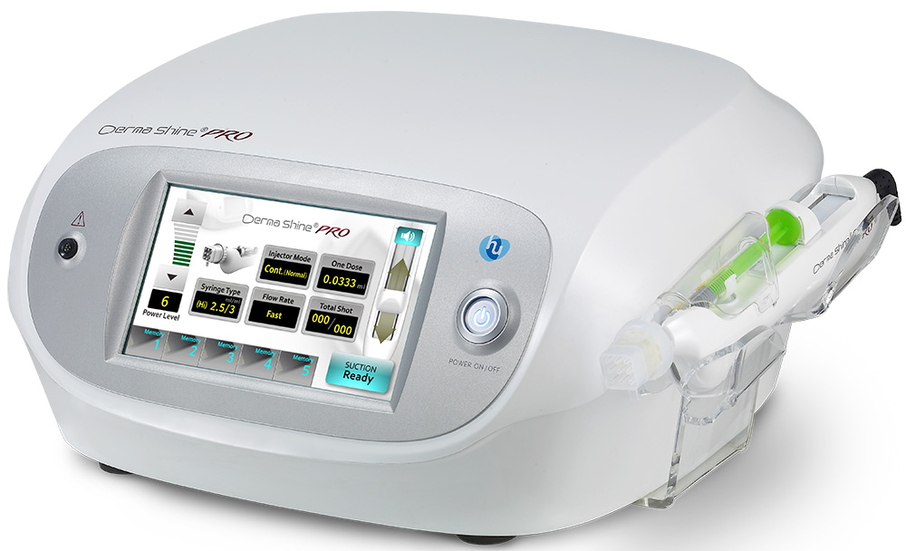 Přístroj Derma Shine Pro je zdravotnický prostředek, který se používá k přesnému subkutánnímu vpravení specifického množství účinné látky. Použití vakuového systému také minimalizuje riziko vzniku modřin tím, že nadzvedne kůži a odtáhne ji od cév. Tento systém také snižuje bolest pacienta.